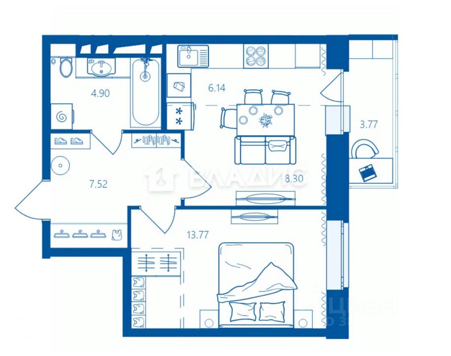 Квартира расположена на 11-м этаже 16-этажного кирпичного дома, построенного в 2025 году. Из окон открывается вид на реку. Общая площадь квартиры составляет 40,5 кв. м, жилая — 22,07 кв. м, площадь кухни — 6,14 кв. м. В квартире есть лоджия и совмещённый санузел.