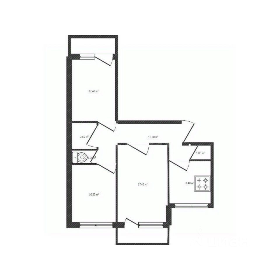 В квартире 2 лоджии, одна в спальне, другая в гостиной, на полах линолеум, потолки покрашены., на стенах обои.