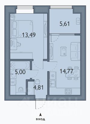Общая площадь43,68 м2