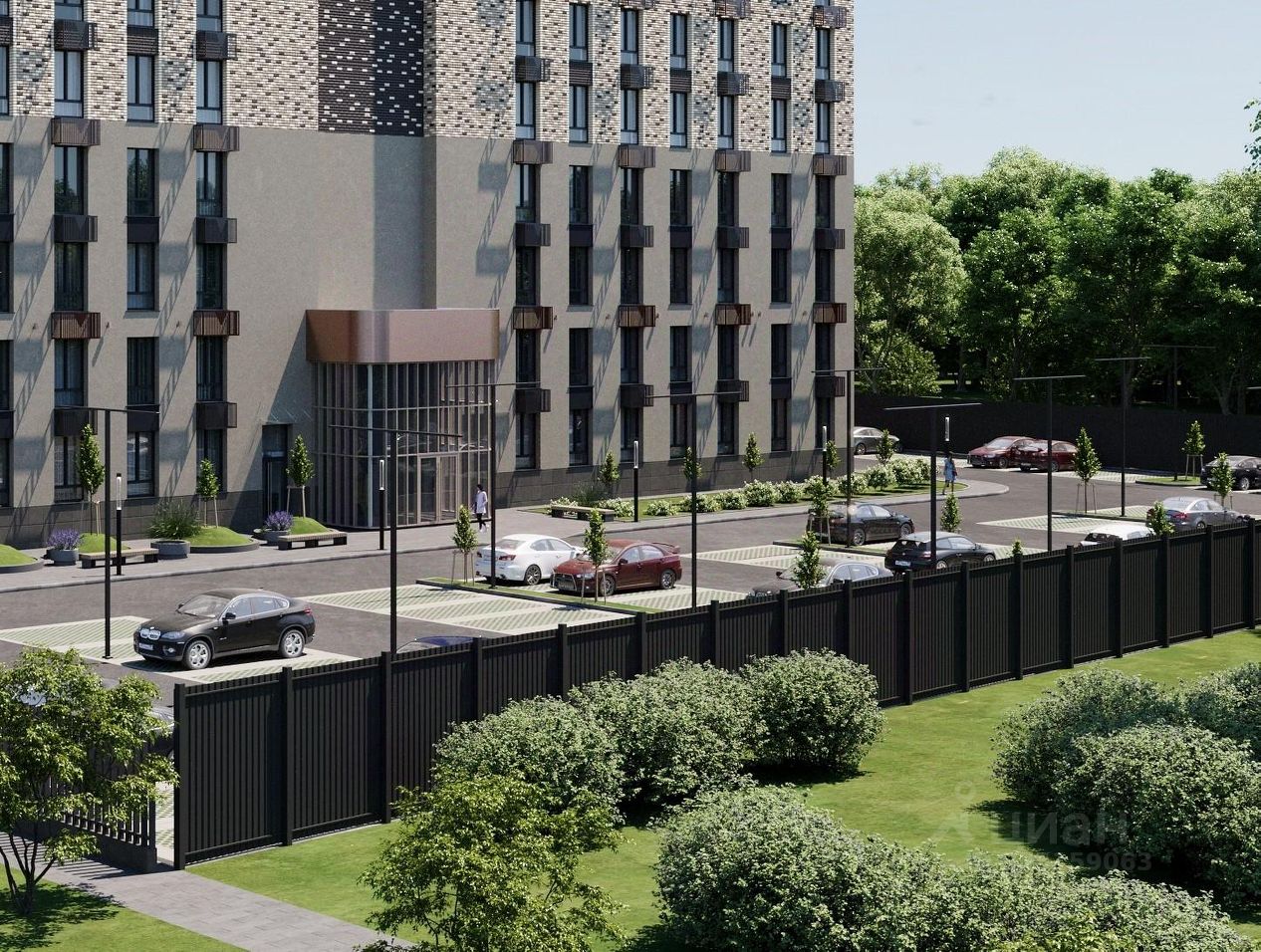 ПРИДОМОВАЯ ТЕРРИТОРИЯ: Контроль доступа на территорию новостройки, видеонаблюдение, круглосуточная охрана, Большая парковка (с существенным превышением нормативов), Детская площадка с усовершенствованным покрытием, Многофункциональная спортивная площадка, Зоны отдыха, ландшафтный дизайн с озеленением территории,