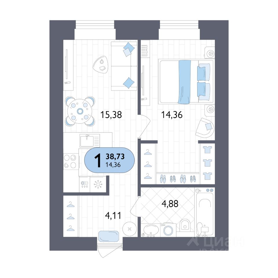 Общая площадь38,73 м2