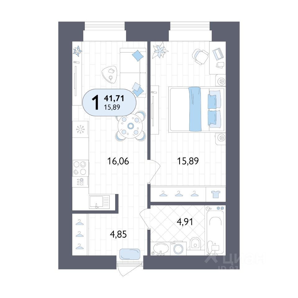 Общая площадь41,71 м2