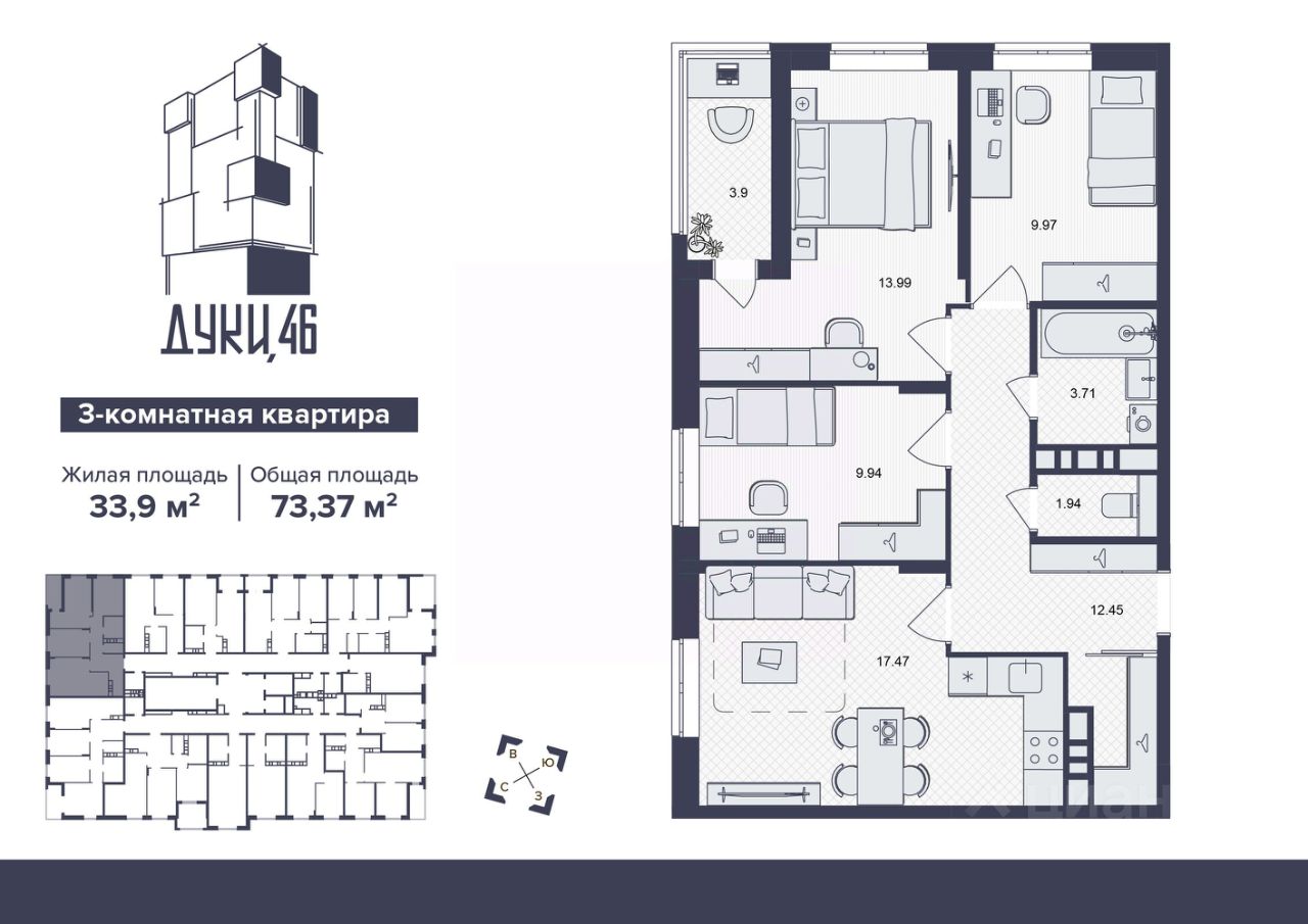 ЖК ''Дуки, 46'' - место, где каждый сможет выбрать свою идеальную квартиру. Наши лучшие архитекторы продумали для вас современные планировочные решения, где каждый квадратный метр будет использован с пользой и по назначению. Мы рады предложить вам квартиры с панорамными видами, которые открывают невероятные горизонты и наполняют каждый день вдохновением. Каждая квартира спроектирована с учетом максимального использования пространства и света.
