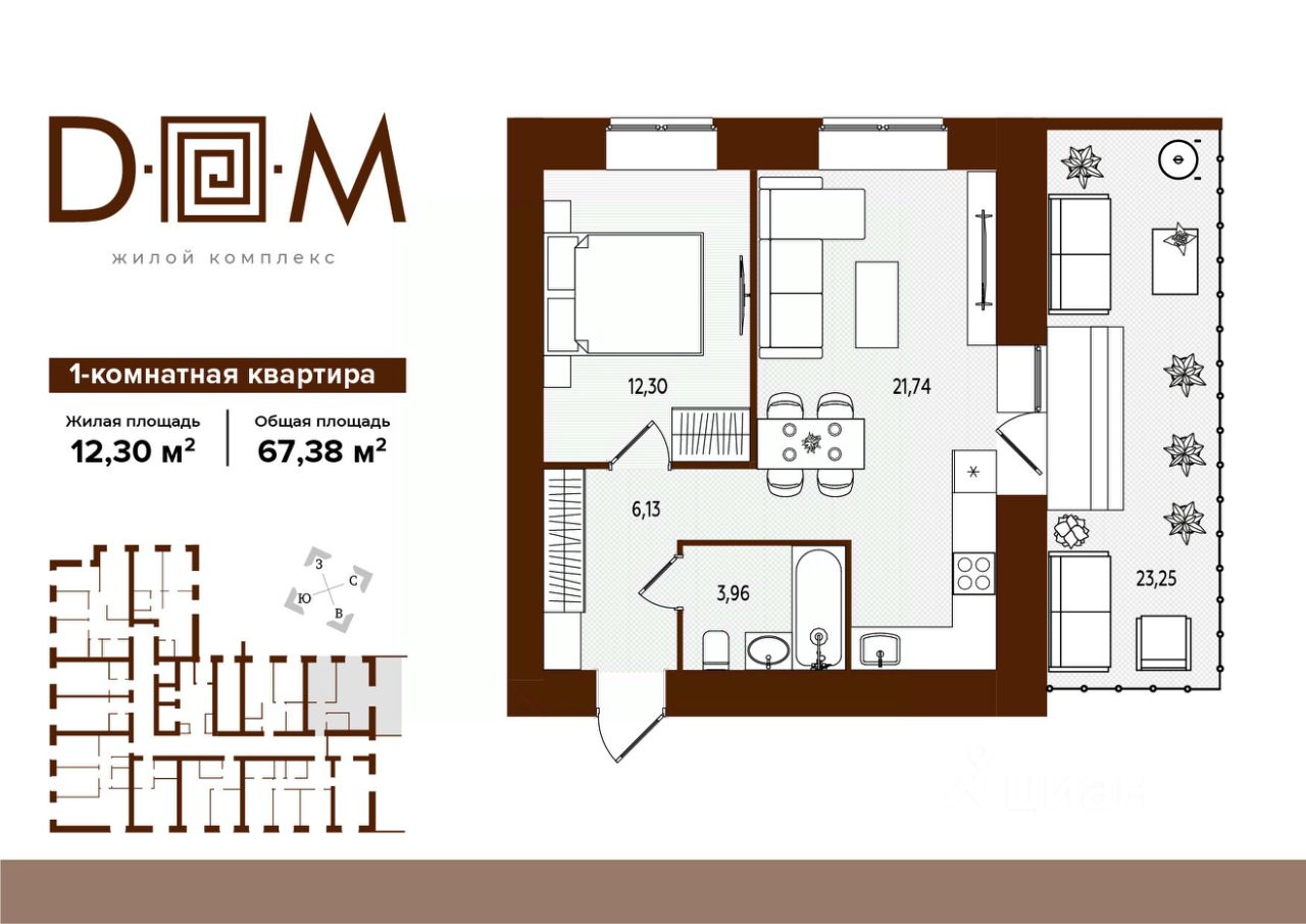 Продаётся 1-комнатная квартира в строящемся доме (поз.1), срок сдачи: IV-кв. 2027, общей площадью 67.38 кв.м., на 11 этаже. Новый жилой комплекс ''Д.О.М.'' от застройщика ''Надежда'' расположен по адресу: г. Брянск, ул. Романа Брянского