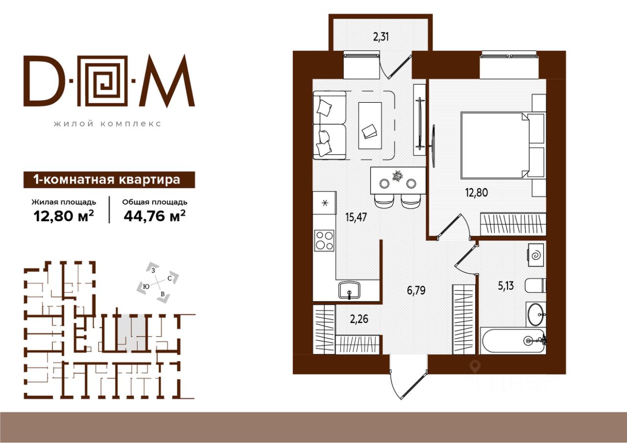 Общая площадь44,76 м2