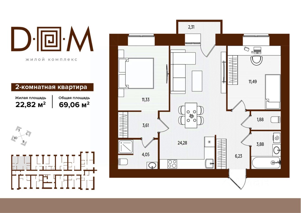 Общая площадь69,06 м2