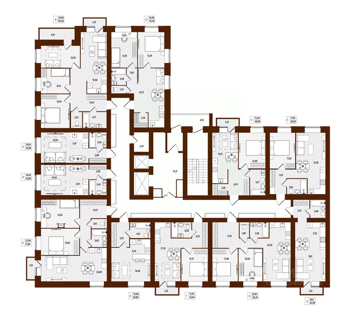 Общая площадь43,29 м2