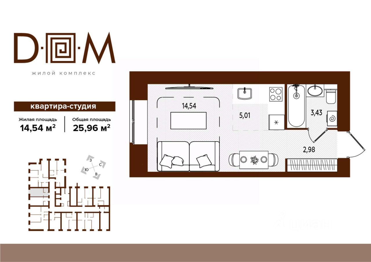 Продаётся студия в строящемся доме (поз.1), срок сдачи: IV-кв. 2027, общей площадью 25.96 кв.м., на 8 этаже. Новый жилой комплекс ''Д.О.М.'' от застройщика ''Надежда'' расположен по адресу: г. Брянск, ул. Романа Брянского