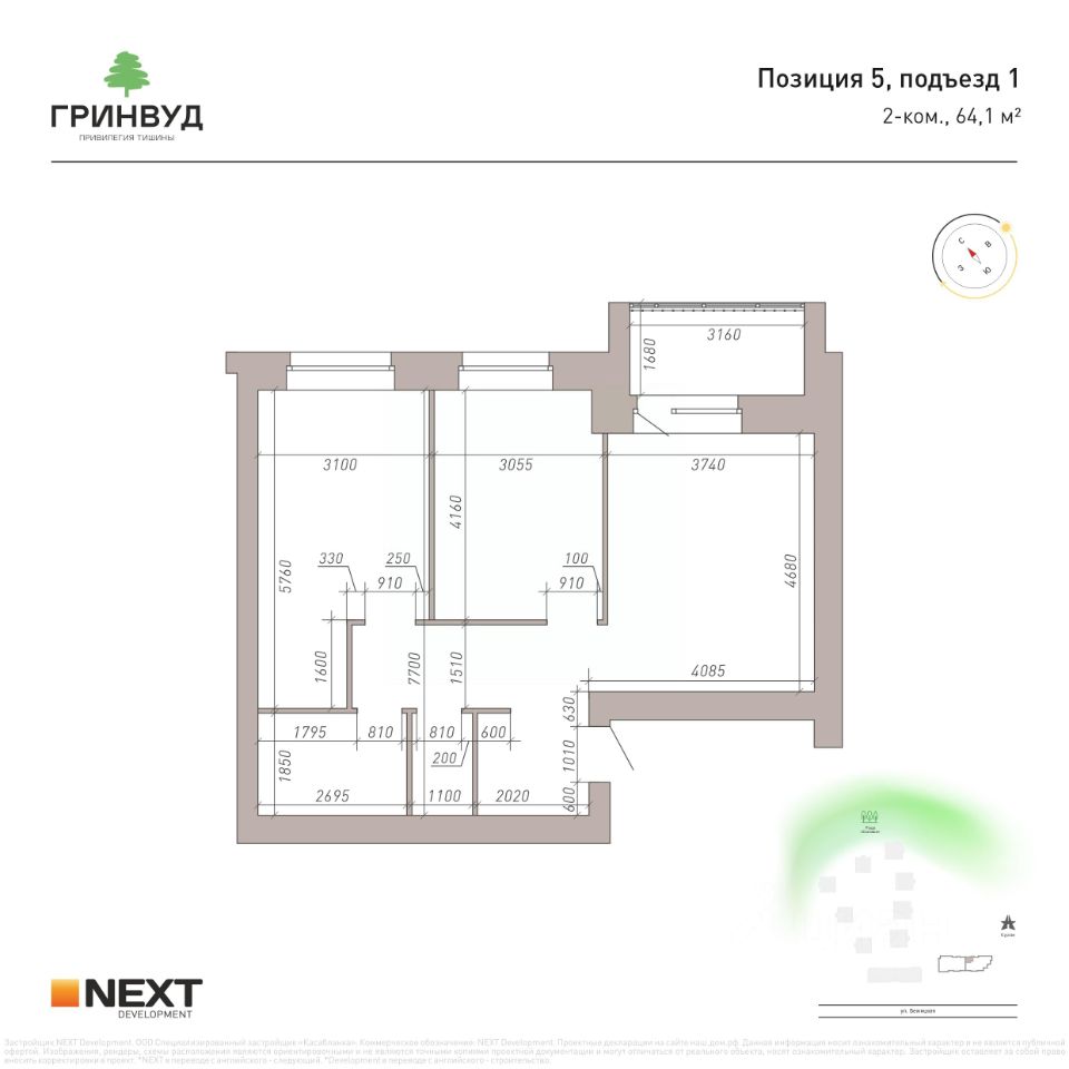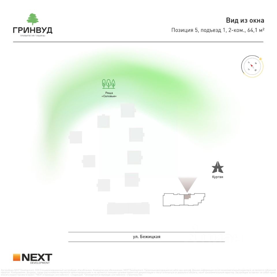 ''Гринвуд'' гордится своей локацией: удобный и быстрый выезд в соседние районы города, в пешей доступности Курган, Центральный парк культуры и отдыха, добраться на машине за 5 минут можно до ТРЦ ''Аэропарк'', ТЦ ''Европа'' и Дворца единоборств им. Артёма Осипенко.