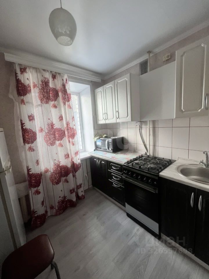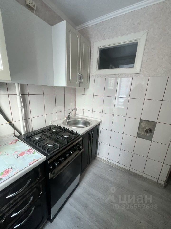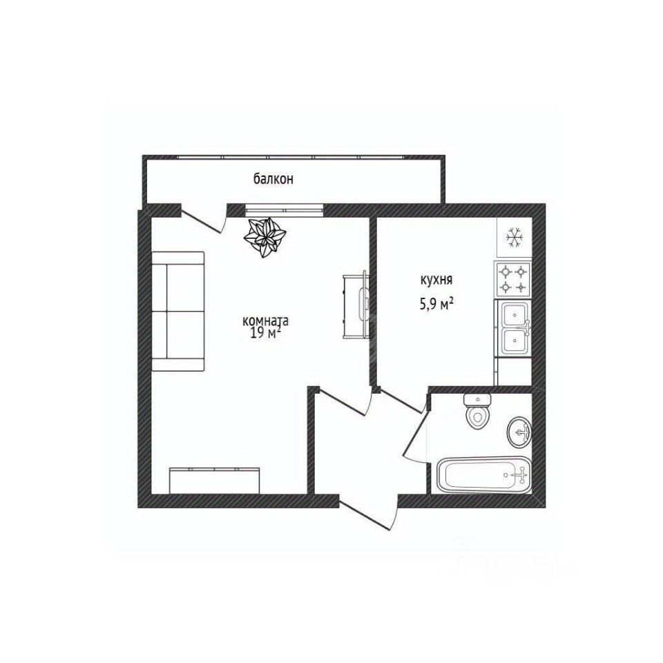 Общая площадь 33,7м2, кухня 6,8м2, комната 19м2. В квартир останется кухонный гарнитур, кровать, кухонный стол.