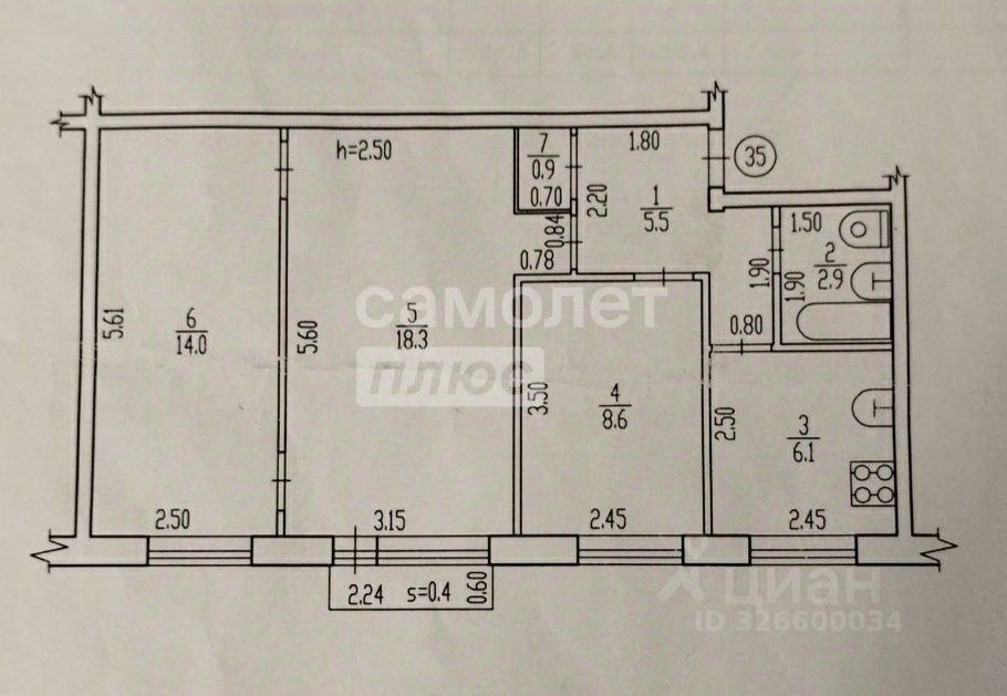 Общая площадь- 56.3 кв. м