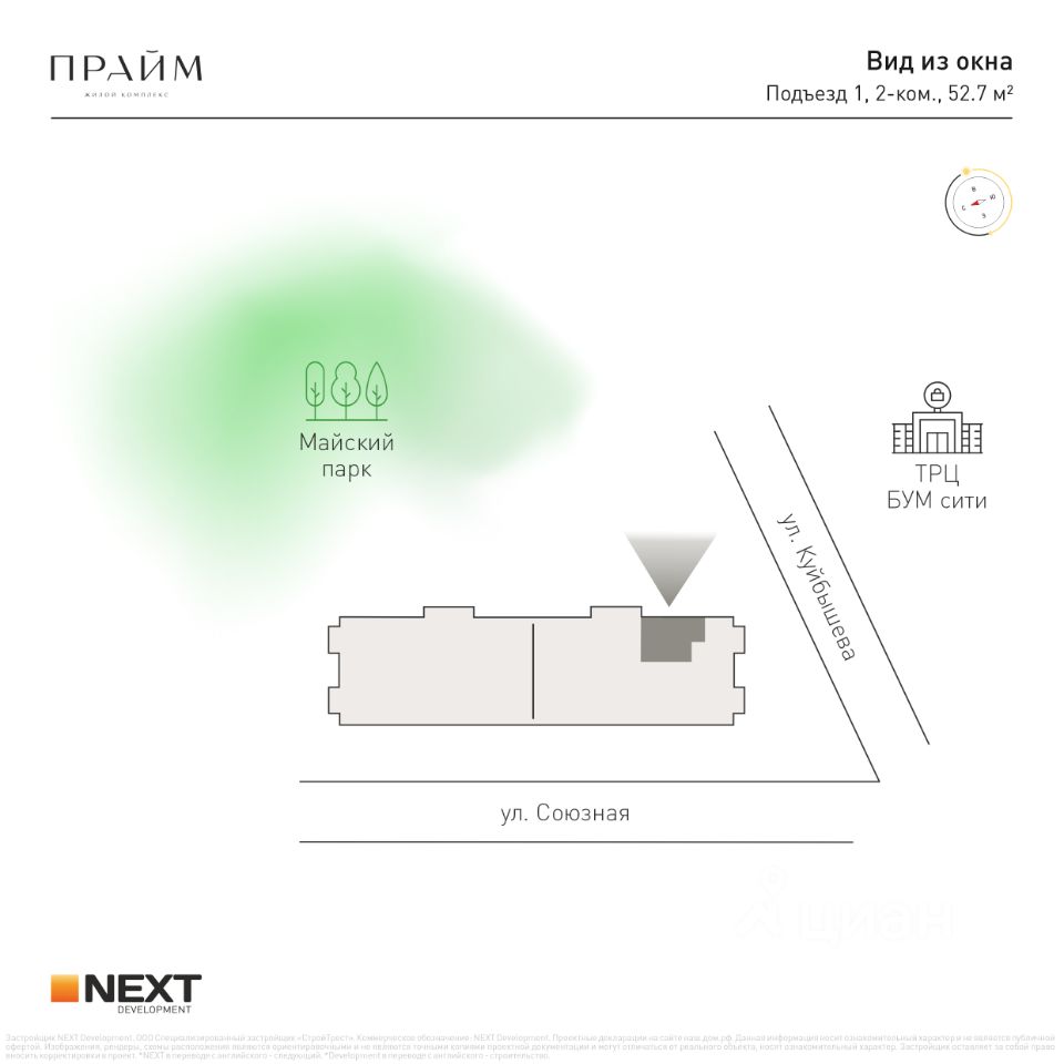 Рядом парк ''Майский'', ТРЦ ''БУМ-Сити'', школы, детские сады, кафе, деловая инфраструктура и транспортные пути города.