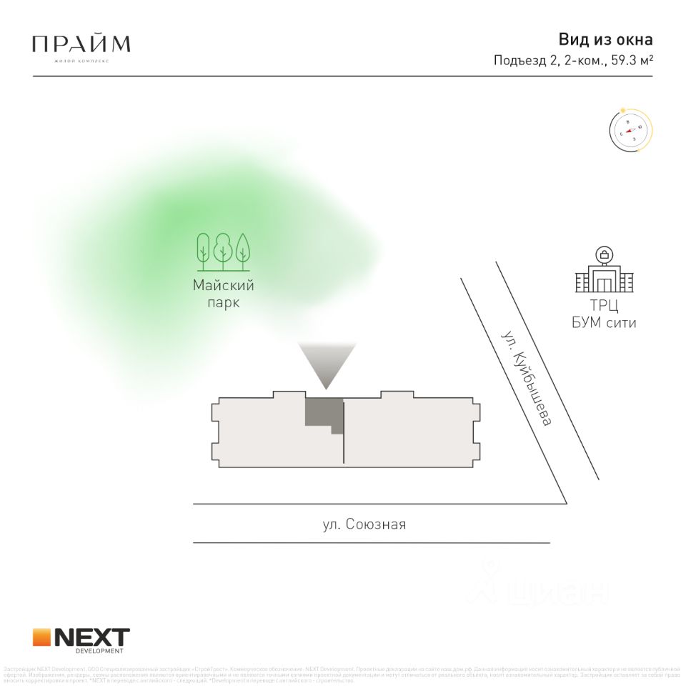 Рядом парк ''Майский'', ТРЦ ''БУМ-Сити'', школы, детские сады, кафе, деловая инфраструктура и транспортные пути города.