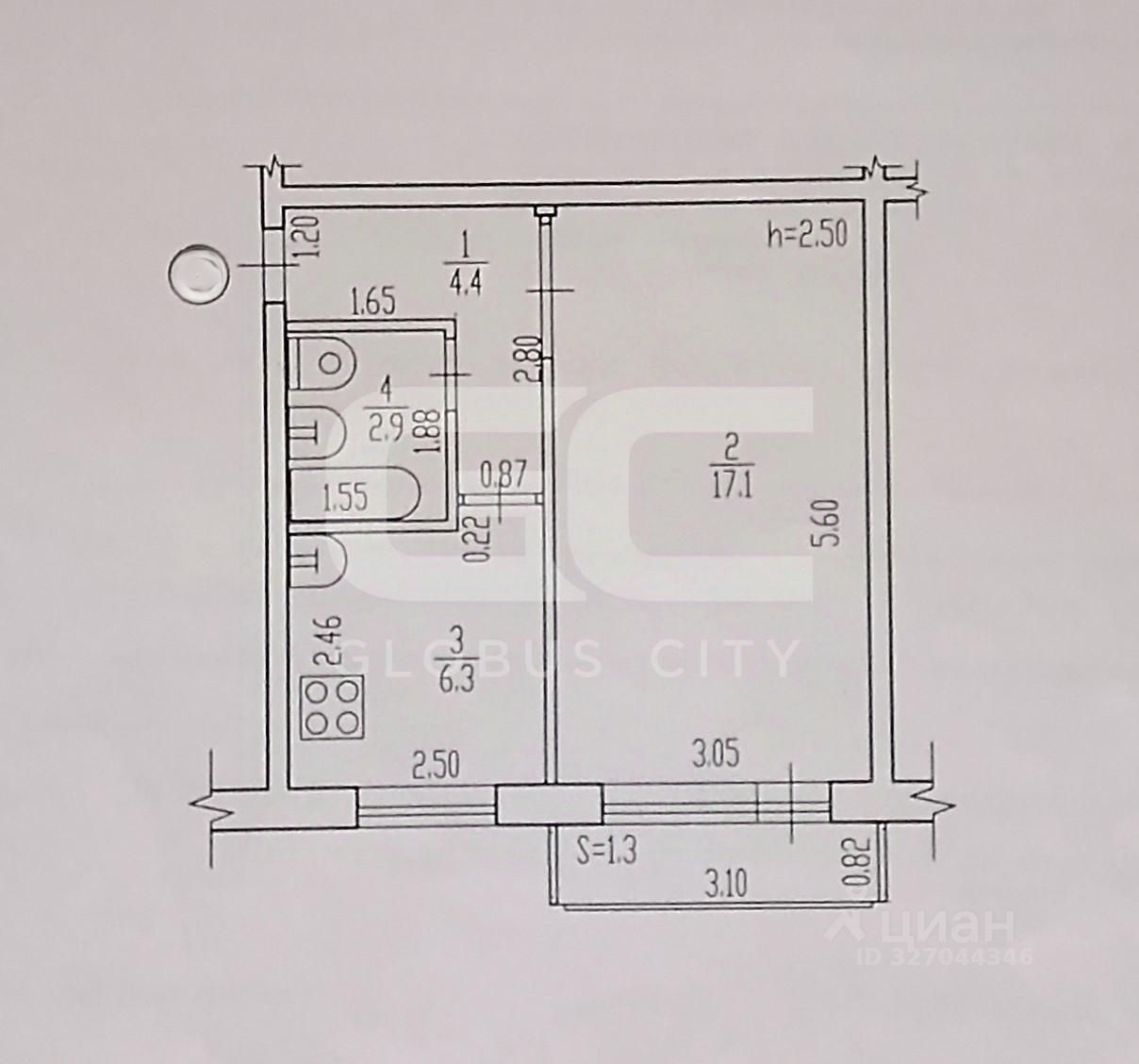 продам 1-к, Почтовый переулок, 1622 100 000 ₽