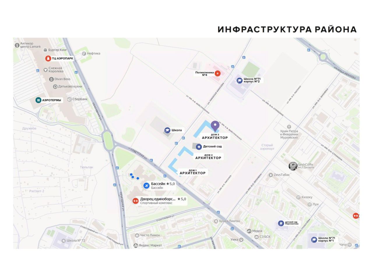 ЖК ''Архитектор'', 3 дом — дом, где продумано всё до деталей Советский район, пересечение Войстроченко и Амосова. Сдача — 1 квартал 2027 года ________________________________________ Прямые продажи от застройщика Без комиссии Ипотека от 6% — семейная, IT, с господдержкой Бесплатно подаём заявки во все банки города Сопровождаем сделку до ключей ________________________________________ Почему ''Архитектор'' — это больше, чем просто жильё? 1. Современный кирпичный дом комфорт-класса Технология STOMIX: фасад с утеплением и стильной отделкой алюмокомпозитными панелями. 2. Дом переменной этажности (915 этажей) с индивидуальной крышной котельной — это тепло, автономия и экономия на коммунальных круглый год. 3. Квартиры с комфортом продуманным до мелочей: — Высокие потолки 2,73 м — Увеличенные окна (высота от пола всего 50 см) — Энергосберегающие стеклопакеты с усиленной шумоизоляцией — Панорамное остекление лоджий с тонировкой — Предчистовая отделка white box — стены выровнены, сделана стяжка, электрика, гидроизоляция и разводка отопления — Стальные радиаторы — Корзины для кондиционеров и детские замки на окнах — Надёжная входная дверь с замком 3 класса защиты — Противопожарные датчики — ваша безопасность на первом месте ________________________________________ Комфорт начинается с первого шага: — Авторский дизайн холлов с высокими потолками — Удобная навигация — Вход на уровне земли — удобно для всех — Колясочная с индивидуальным доступом ________________________________________ Закрытая территория с видеонаблюдением и продуманным двором для жизни: — Просторная нейродинамическая детская площадка 900 м² — Зеленая зона отдыха с шезлонгами и беседками — Спортивная зона, настольный теннис, воркаут — Вело-беговая дорожка почти 500 м — 4 уровня озеленения и освещения — Зарядка для электромобилей ________________________________________ Локация — в сердце нового центра Советского района Всё рядом — магазины, аптеки, кафе, детские центры, фитнес, бассейн, ТЦ ''Аэропарк'', Медси. В 510 минутах пешком: — Школа 71 ( второй корпус) — Школа иностранных языков — Детские сады: Гармония, Тюльпанчик, Росинка — Поликлиника — Остановки транспорта