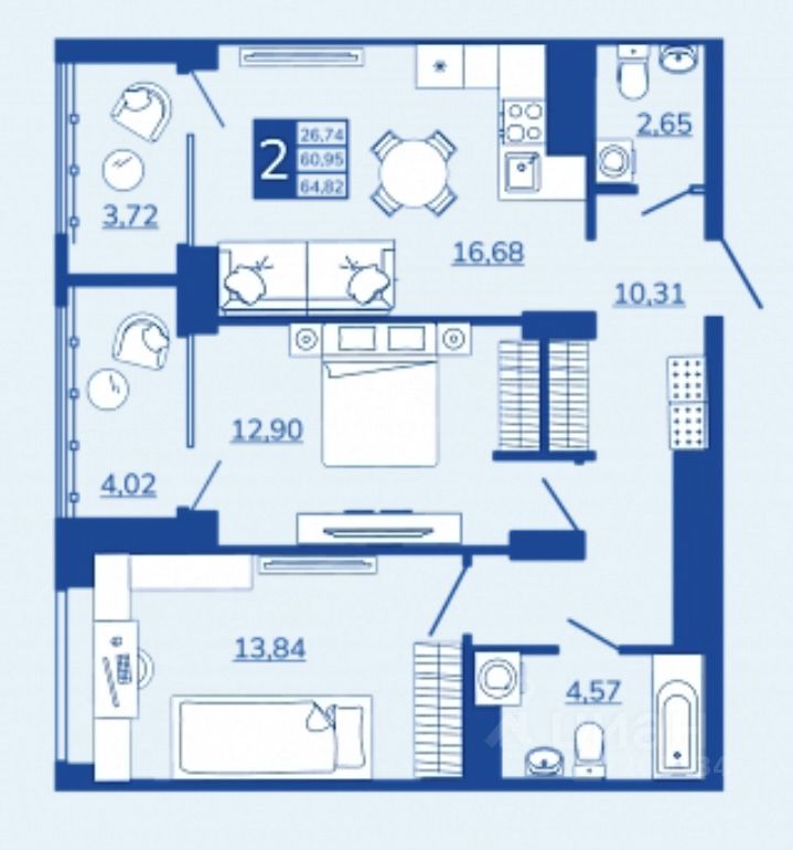 Общая площадь64,82 м2