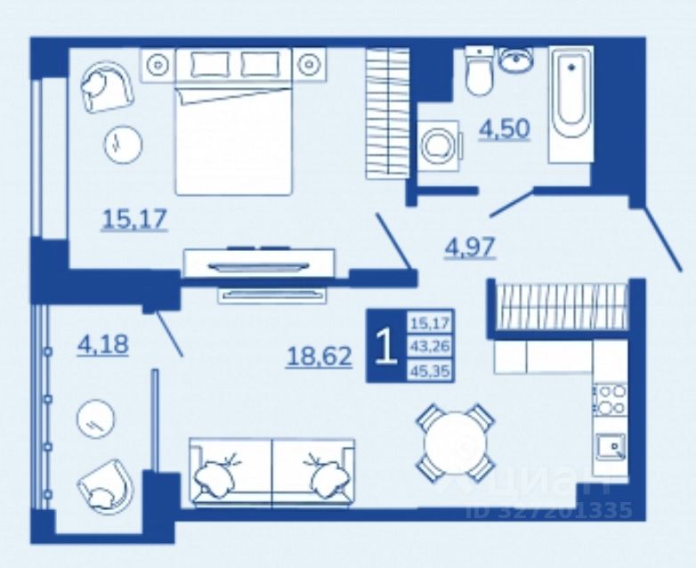 Общая площадь45,35 м2