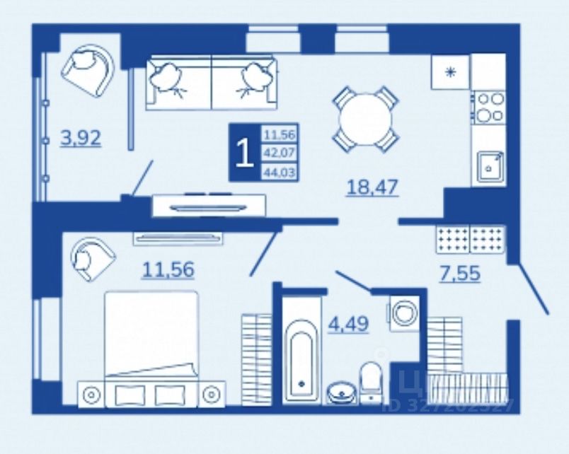 Общая площадь44,03 м2