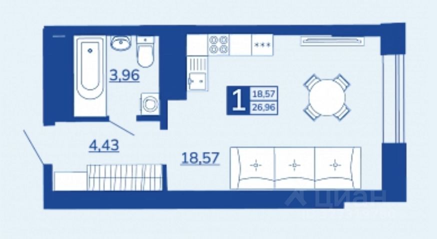 Общая площадь26,96 м2